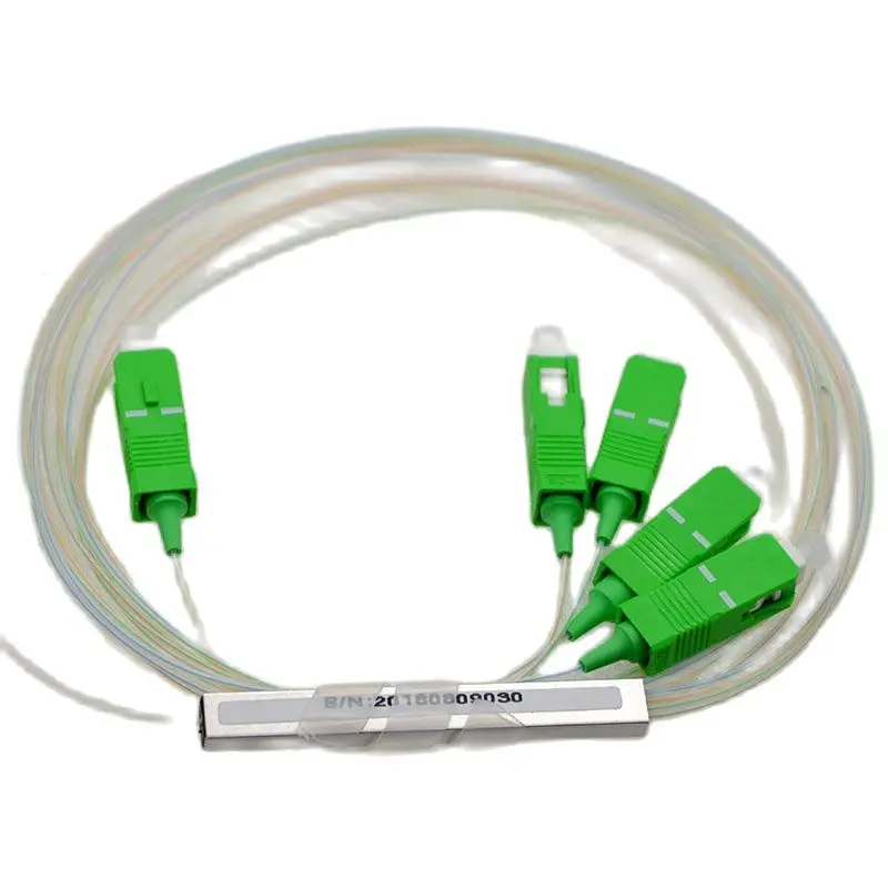 Conector de fibra óptica, divisor PLC, divisor de fibra 1 puntos y 4, mini prueba de tubo de acero SC, arnés de fibra desnuda diferencial 0,9,