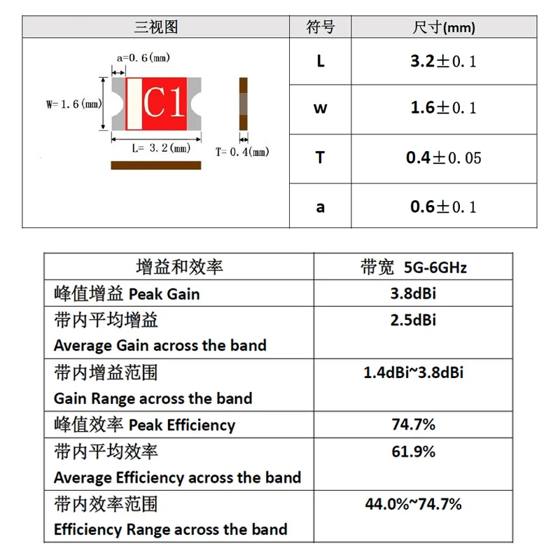 Comprar 10 Uds OverAir OA-C01 5GHz 5,8G antena de parche SMD de cerámica de frecuencia única Wifi transmisión de imagen inalámbrica C-V2X PCB