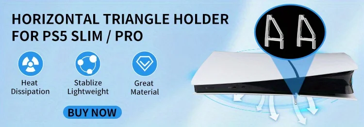 El soporte horizontal se ajusta a las versiones PS5 Slim y PS5 Pro.Y es adecuado para colocarlo en la mesa del televisor, estantes o cualquier superficie plana, puede colocar la consola con soporte horizontal en cualquier lugar que desee, para evitar que la consola entre mascotas o niños tropezcan.