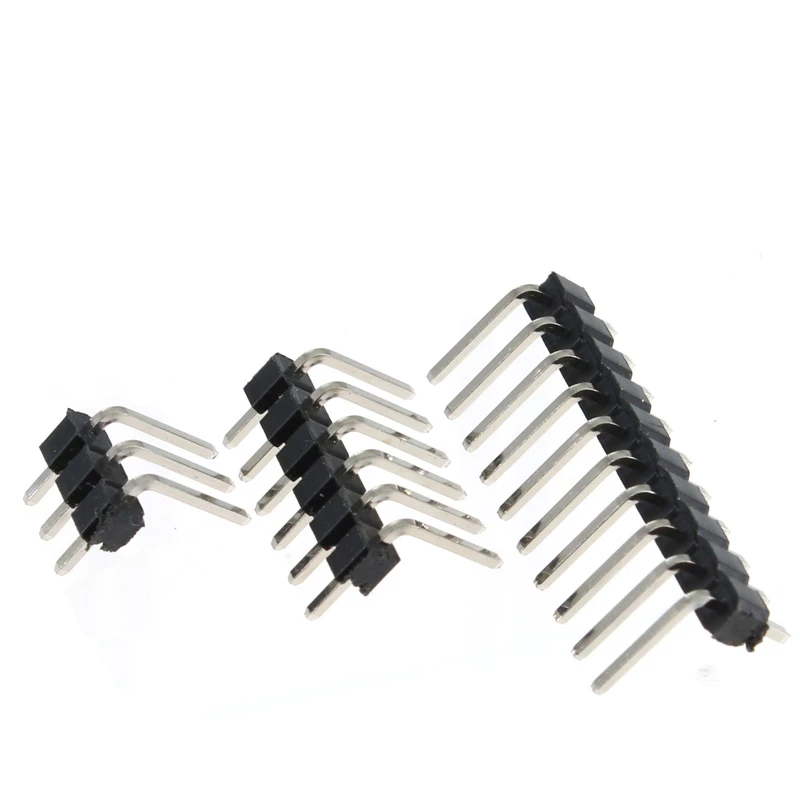 Comprar 10 Uds. Placa PCB de ángulo recto de una sola fila de 2,54mm conector de pines de cobre conector macho Pinheader 1*3/4/10/12/15/40Pin para Arduino