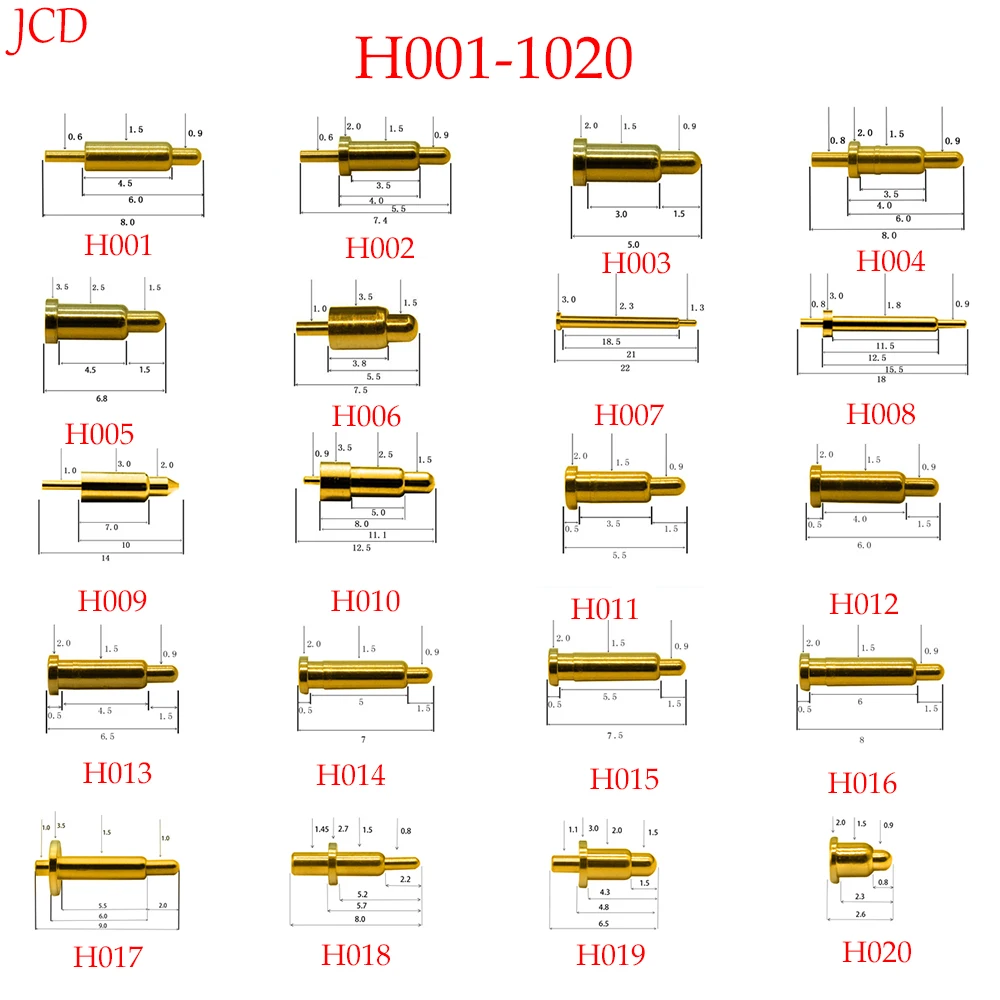 10 Uds Pogopin resorte Pin superior conector de contacto de resorte sonda conductora de contacto telescópico de Metal aguja de resorte de carga