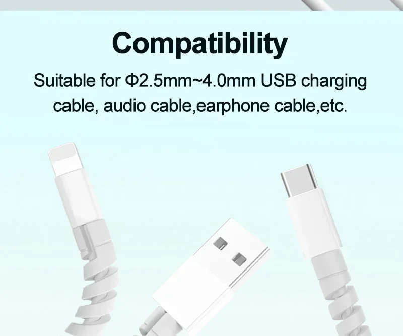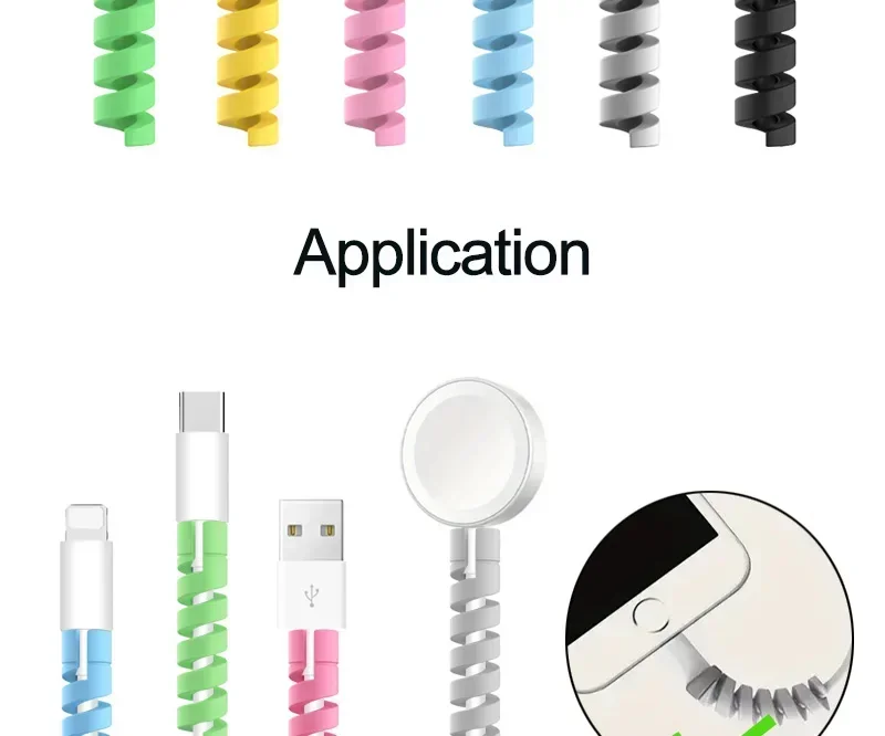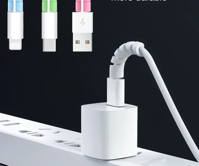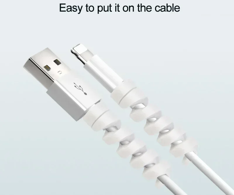 10 Uds. Cables de datos de silicona Protector enrollador tubo Flexible Cable de carga de teléfono cables enrolladores en espiral para cables de cargador USB de teléfono