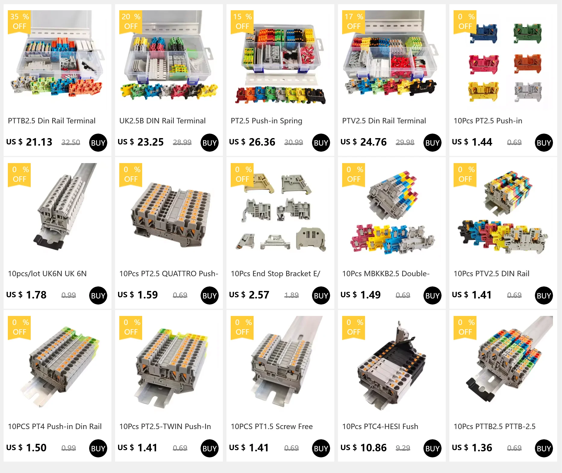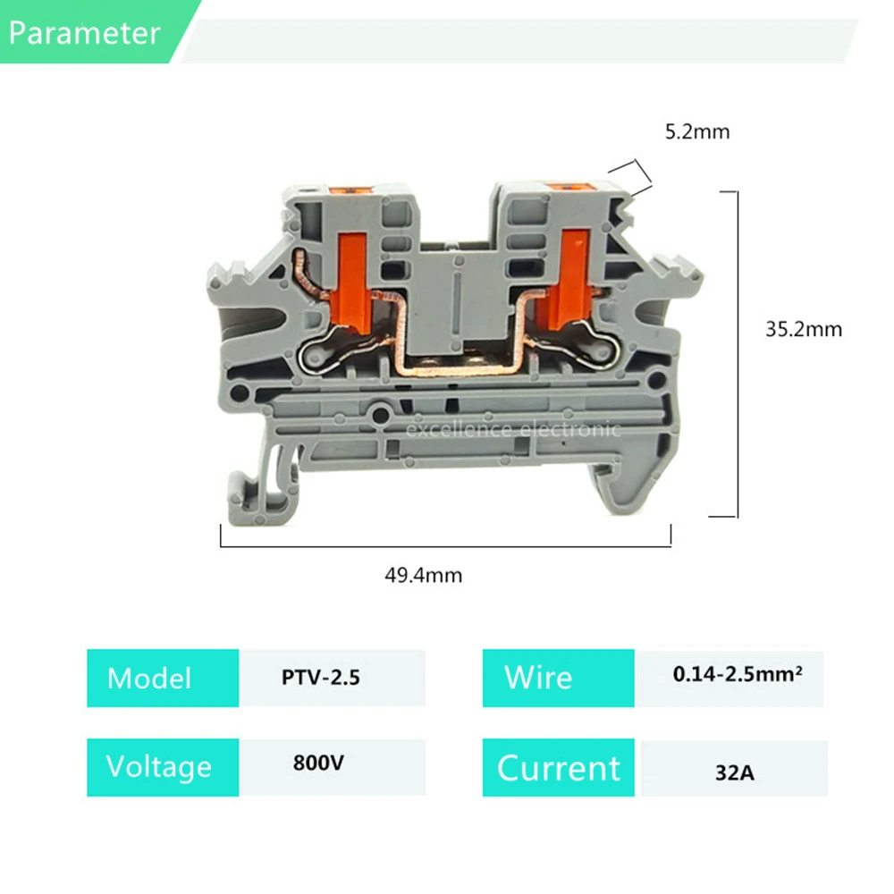 Comprar 10 Uds PTV2.5 bloque de terminales de carril DIN conexión push-in de entrada lateral 2,5 mm2 12AWG Cable cableado conector de Cable eléctrico PTV-2.5