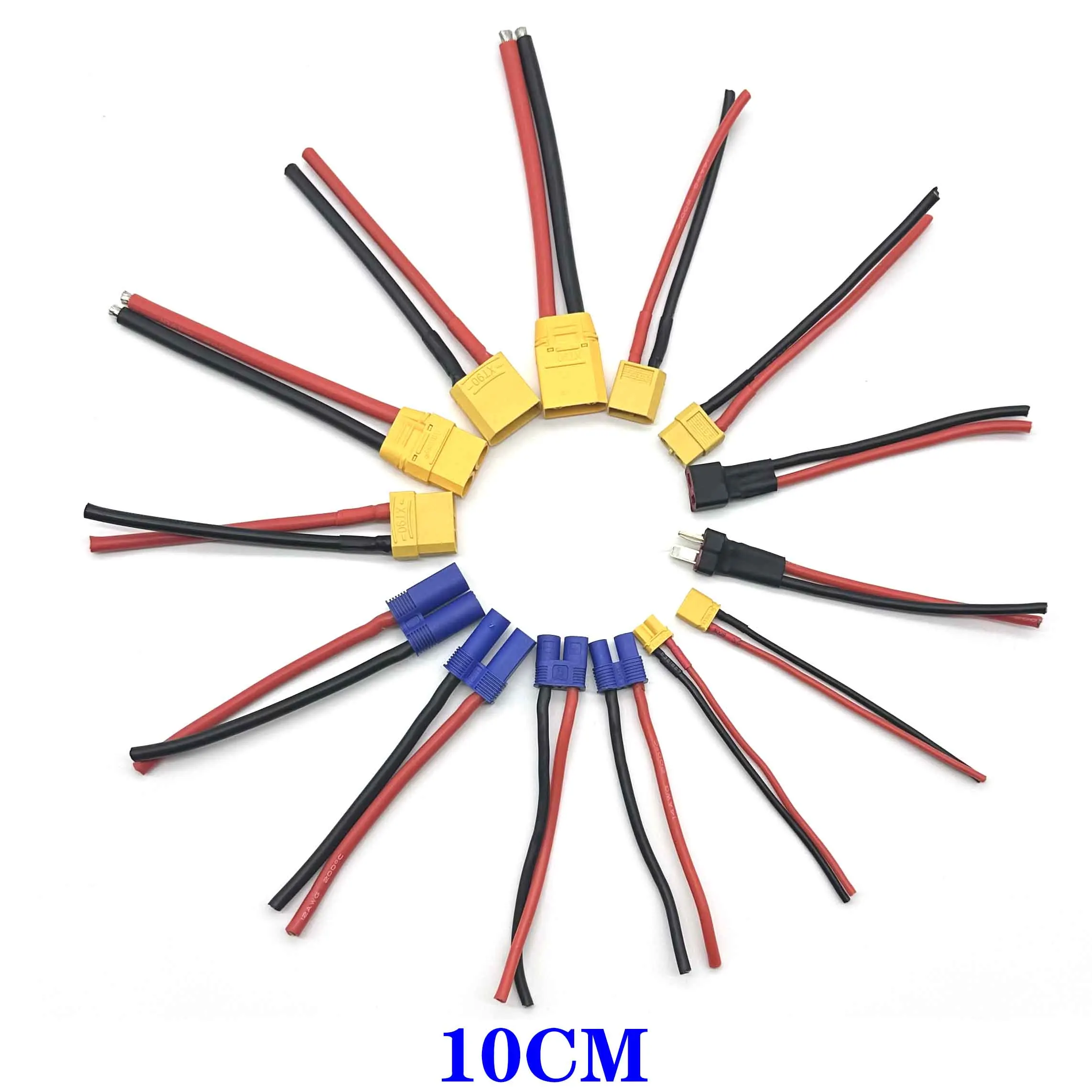 Comprar 10 Uds RC cargador de batería 18AWG 14AWG 12AWG 10AWG t-pulg XT60 XT90 EC3 EC5 enchufe macho hembra Cable de extensión conector 10CM