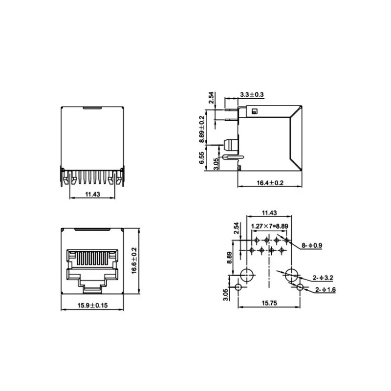 16x15,5x16mm/0,63 "x 0,61" x 0,63 " (L * W * H)