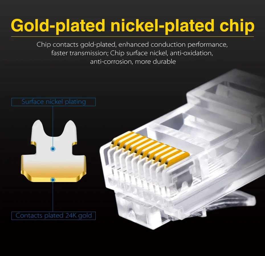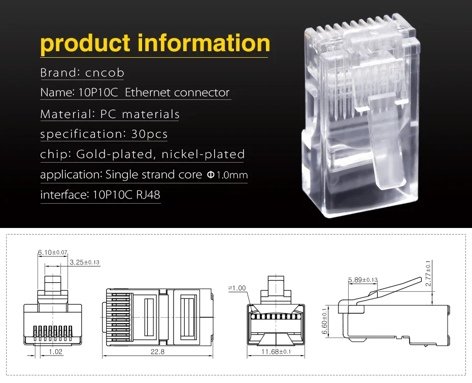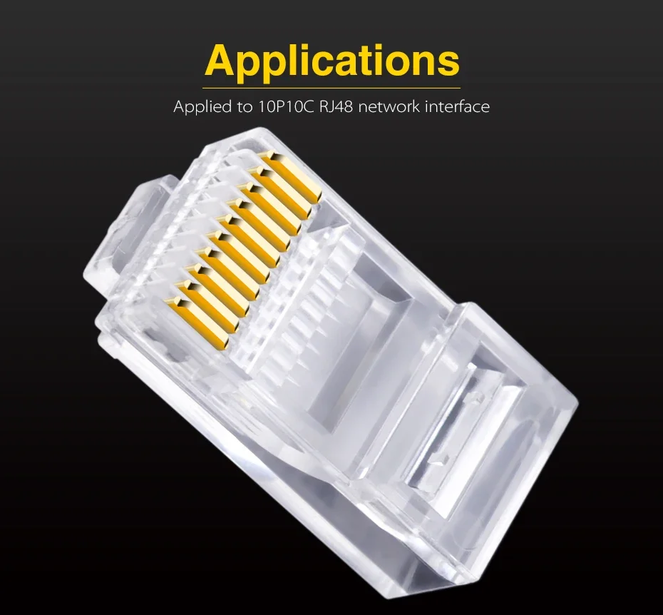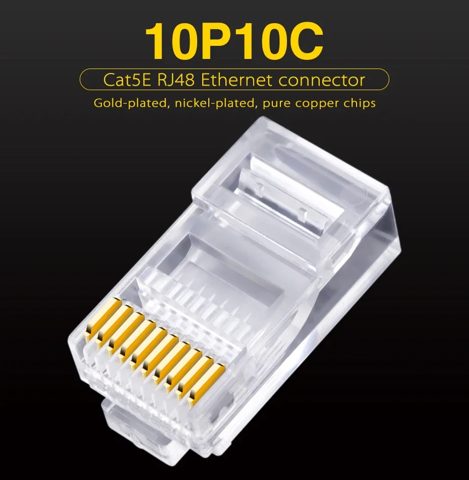 Comprar 10 Uds RJ48 enchufe Modular trenzado macho 10P10C Cable redondo Glod plantación conector Pin conector Ethernet lan red
