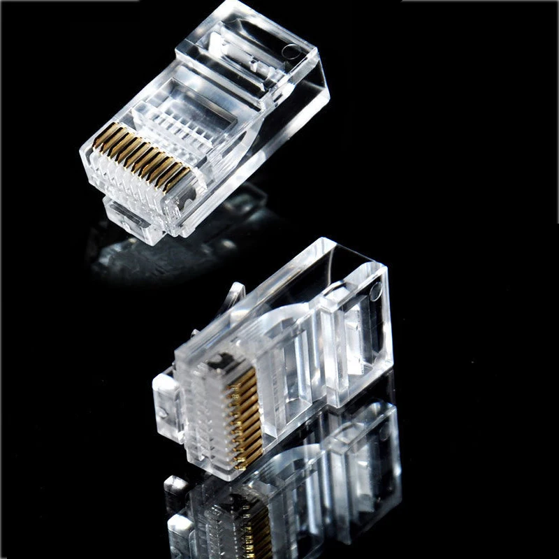 Comprar 10 Uds RJ48 enchufe Modular trenzado macho 10P10C Cable redondo Glod plantación conector Pin conector Ethernet lan red
