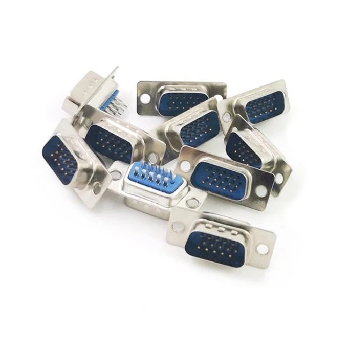 Comprar 10 Uds RS232 DB15 3 filas Serial VGA 15 pines hembra 3 filas tipo soldadura enchufe D-SUB conector macho