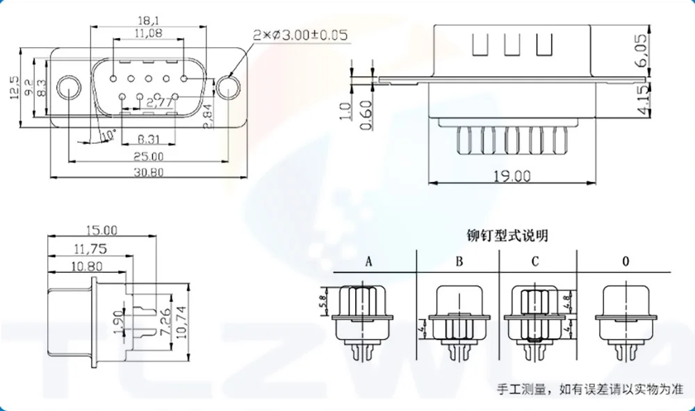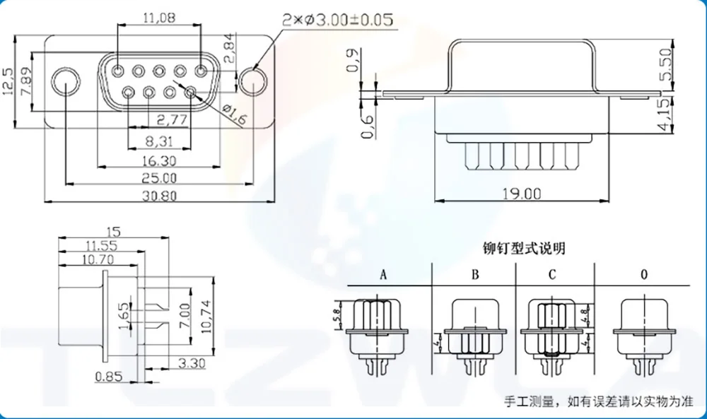 Conectores hembra de 9 pines, desafortunadamente no incluyen tornillos de fijación.