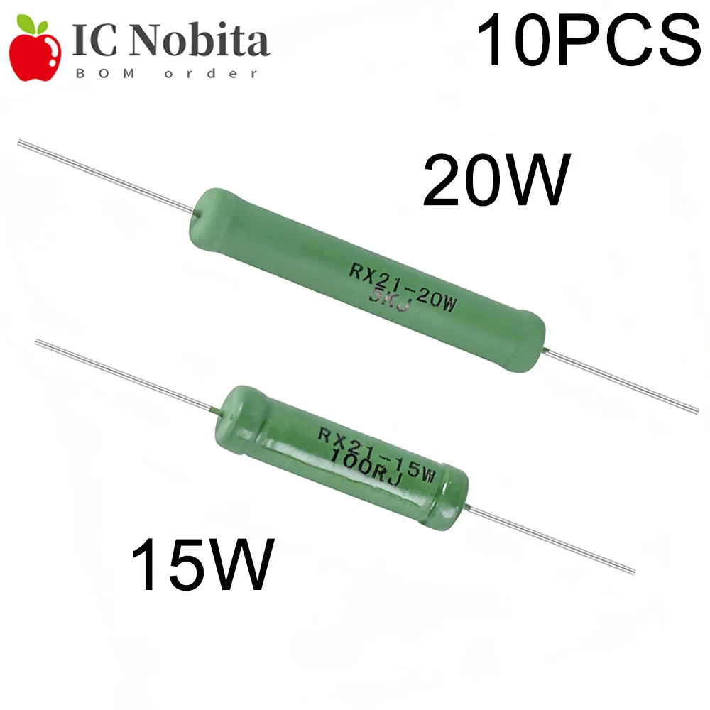10 Uds RX21 resistencia de potencia enrollada de alambre 15W 20W 5 por ciento de tolerancia 0,1 Ohm a 15K Ohm resistencias cerámicas de alta potencia