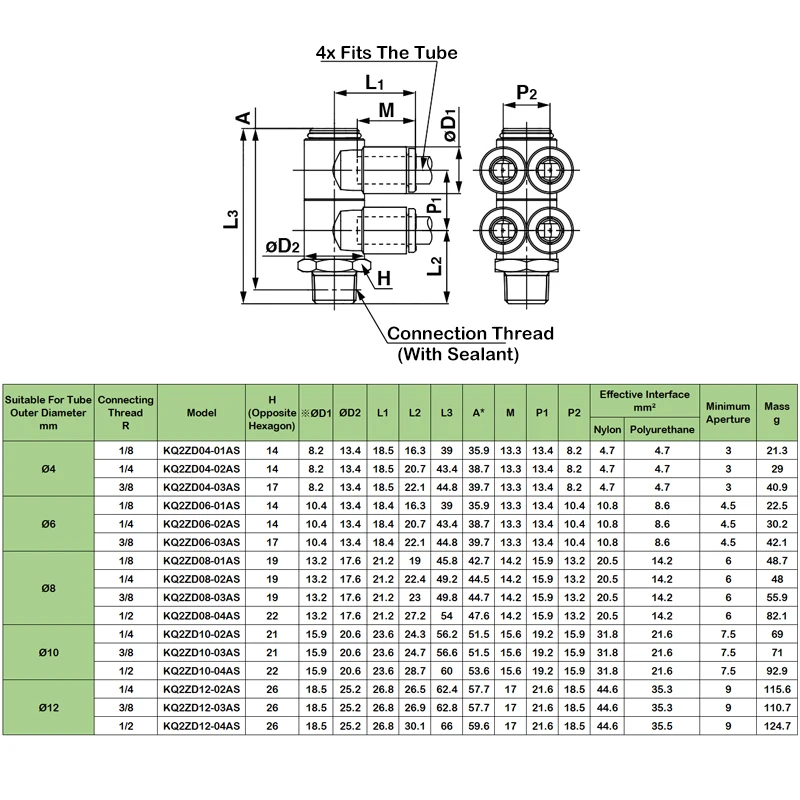 Comprar 10 Uds. Serie KQ2ZD rosca un cambio cuatro o cinco tubo de ventilación cambio rápido junta Universal KQ2ZD04/06/08/10/12-01/02/03/04AS