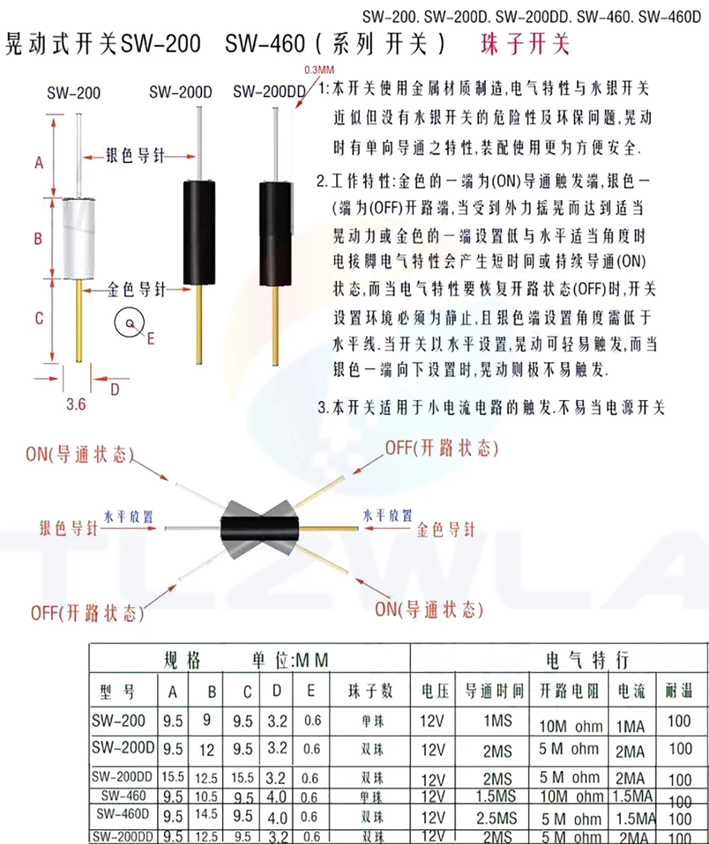 Buen producto, necesita un pequeño ajuste. El sensor funciona así: cuando se gira, el contacto (bola) se mueve hacia adentro y cierra los contactos. En consecuencia, cuando se invierte, la pelota retrocede y rompe el contacto.