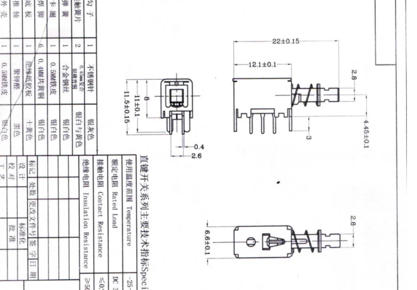 Comprar 10 Uds. De teclas horizontales de empuje, 2 filas, 6 pines, pies de cableado con botón de orejas A04, reinicio automático con bloqueo, interruptor de alimentación de de decodificador de empuje