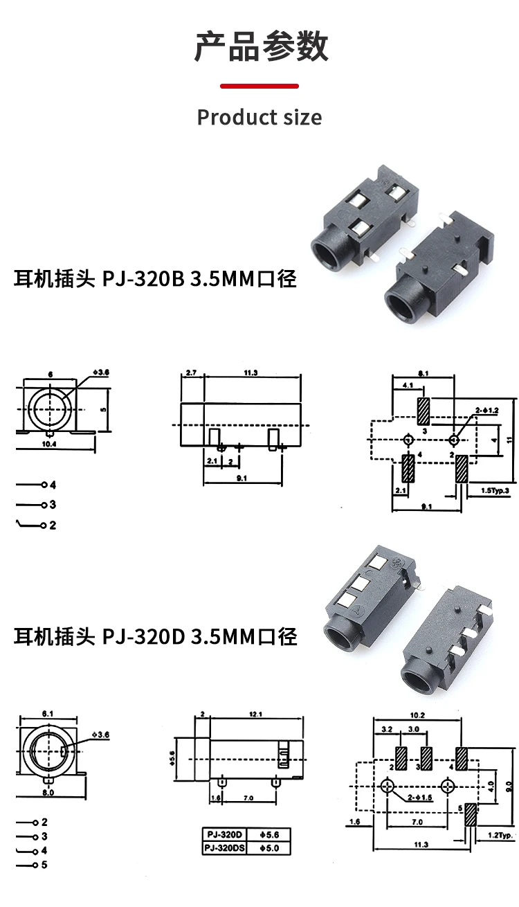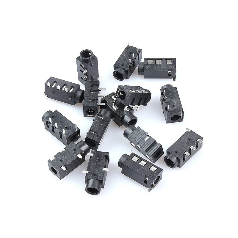 Comprar 10 Uds TRRS conector Jack de Audio de 3,5 MM agujeros pasantes PCB Horizontal 4 contactos 4 conductores ángulo recto sin interruptor interno 4 polos