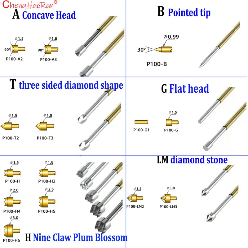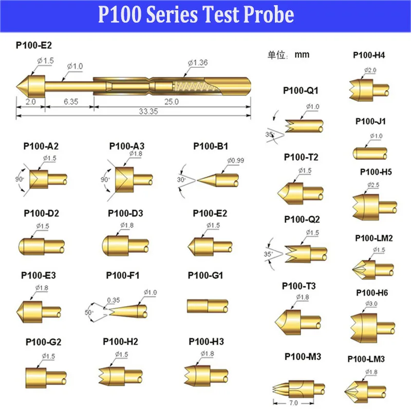 Comprar 10 Uds. Un bolso de la serie P100, sonda de prueba de resorte de latón niquelado, Pin Pogo, aguja de prueba eléctrica
