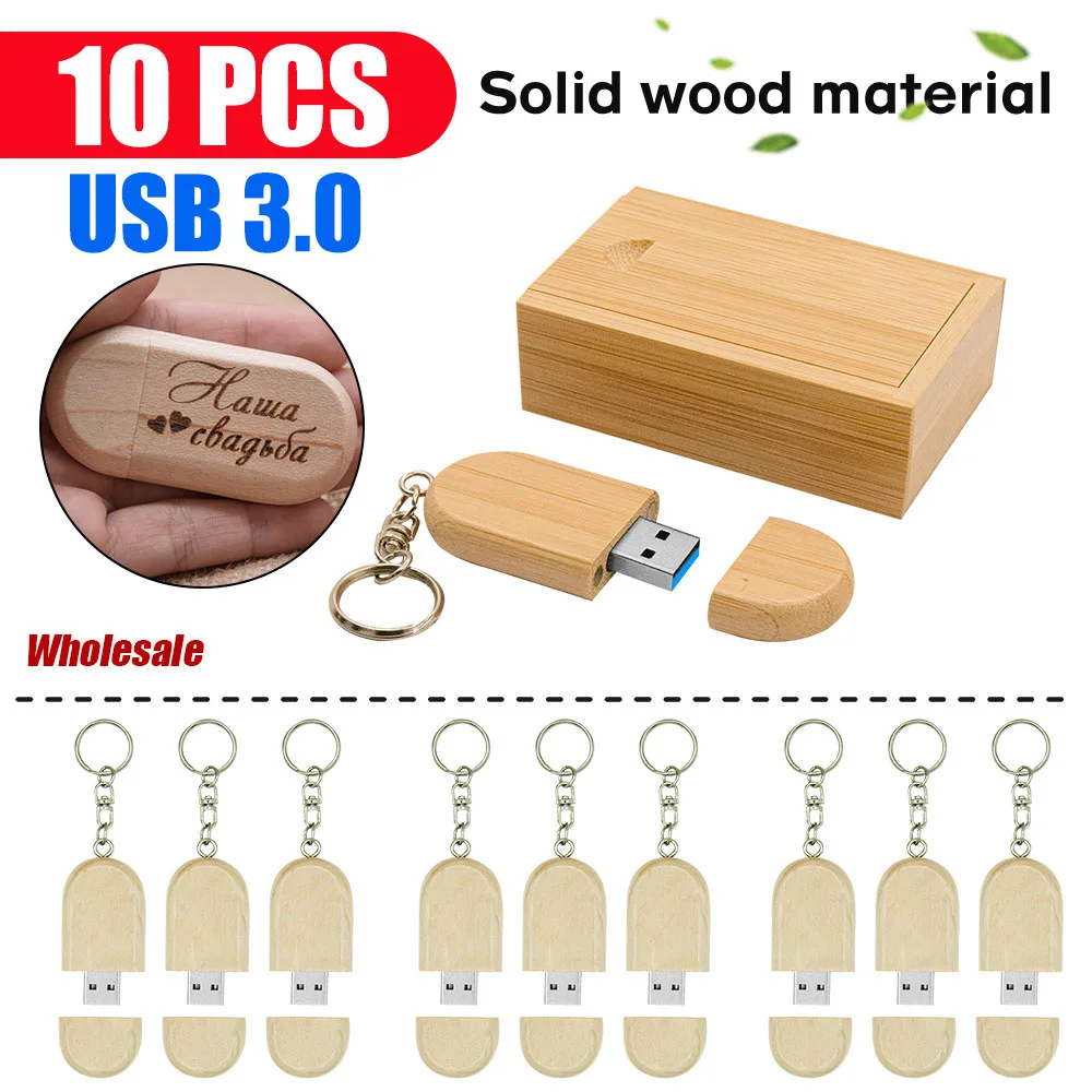 Comprar 10 Uds. De unidades Flash USB 3,0 de madera, 128GB, unidad de bolígrafo con logotipo personalizado gratis, 64GB, 32GB8GB con llavero, memoria, regalo de negocios, disco U