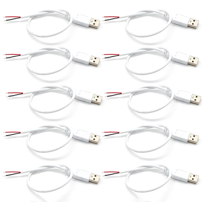 10PCS USB 2.0 Male Plug 2pin Bare Wire USB Power Cable DIY Pigtail Cable For USB Equipment Installed DIY Replace Repair Small Fans