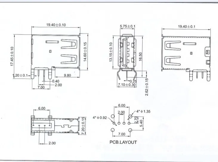 10 Uds Usb 2,0 tipo-a conector hembra lado 90 grados 4 patas Dip