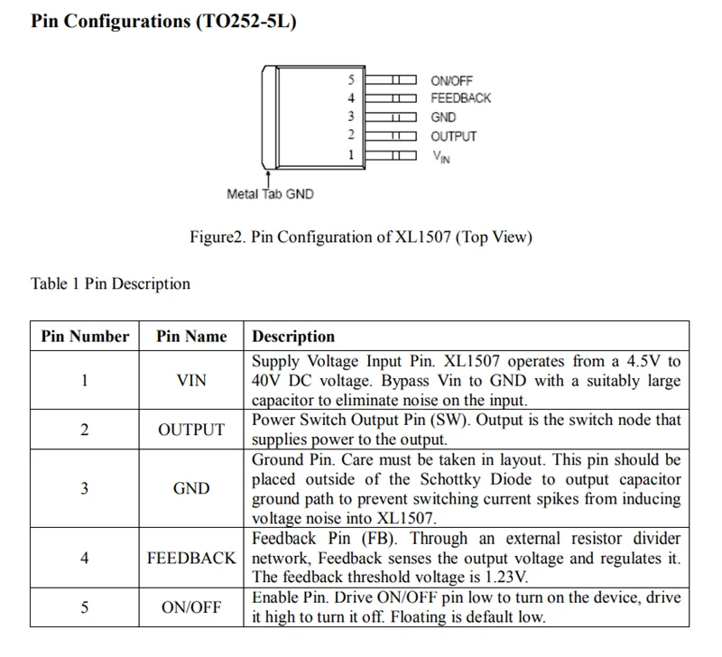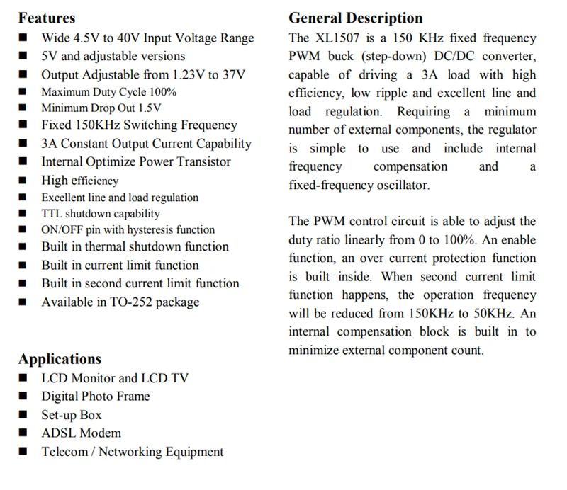 10 Uds XL1507-5.0E1 ADJE1 TO252-5 3A 150KHz 4,5-40V rango de voltaje de entrada salida ajustable de 1,23-37V convertidor Buck DC a DC