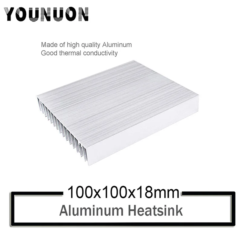 Comprar 10 Uds YOUNUON 100x100x18mm disipador de calor de aluminio plateado módulo disipador de calor aleta enfriadora para dispositivos Semiconductores de Transistor de alta potencia