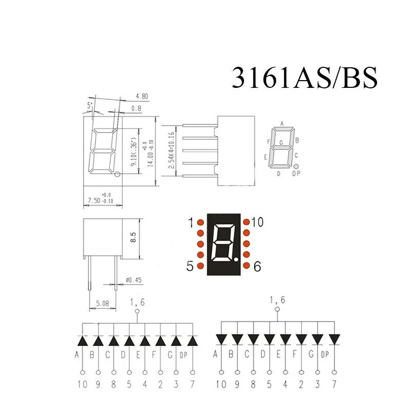 10 unidades de 0,36/0,56 pulgadas 7 segmento 1/2/3/4 bits tubo Digital rojo cátodo común LED Pantalla de dígitos 8x8 Led celosía matriz de puntos rojo brillante
