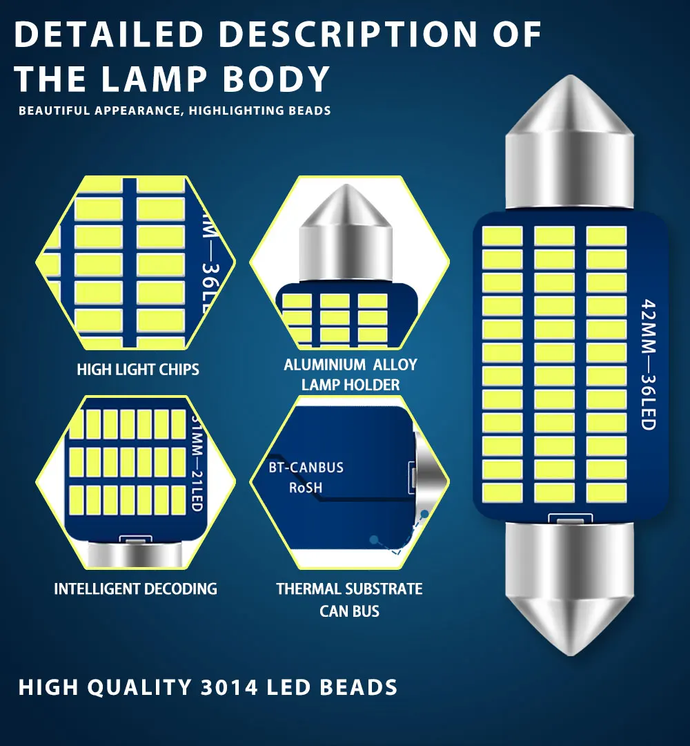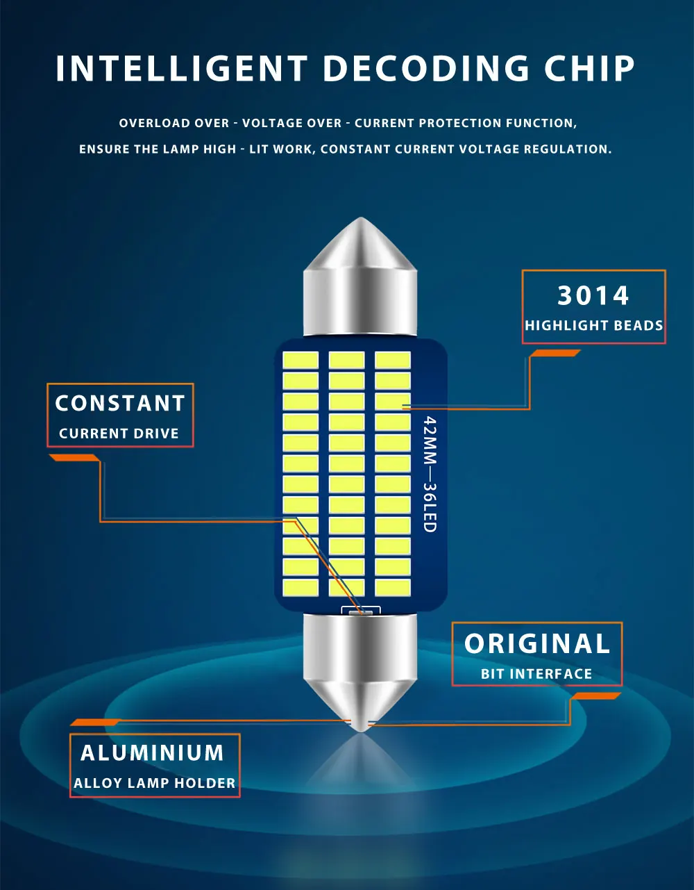 Comprar 10 unidades Festoon C5W LED 31 36 39 41mm 4014 chips LED Canbus C10W luz de lectura interior 12V