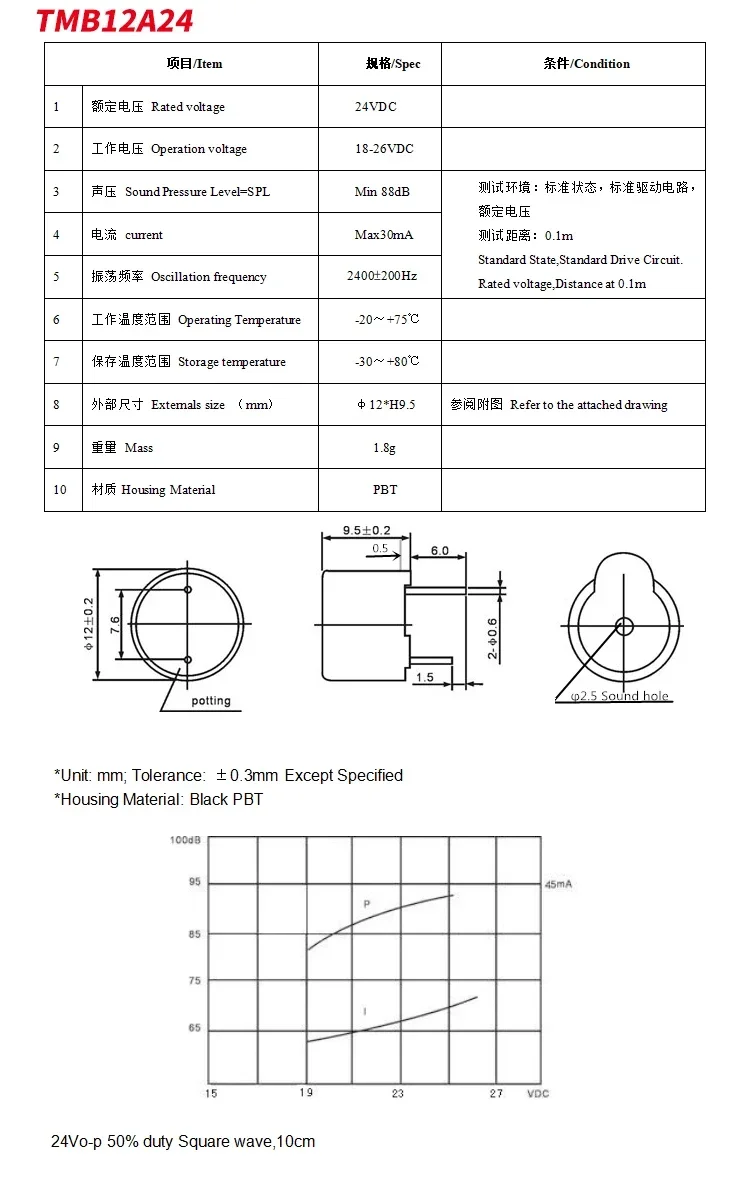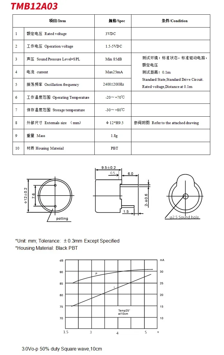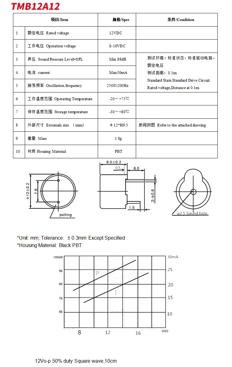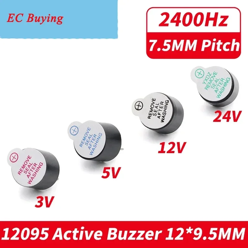 Comprar 10 unids/lote 12095 3V 5V 12V 24V zumbador activo tono de pitido continuo largo timbre de alarma 12*9,5mm zumbador activo TMB12A03 TMB12A24