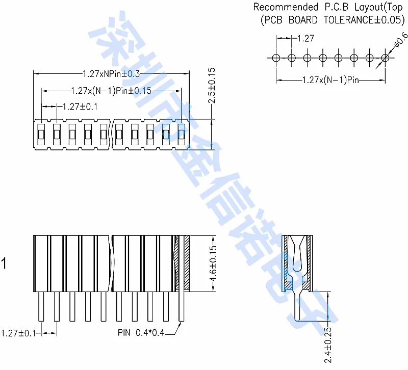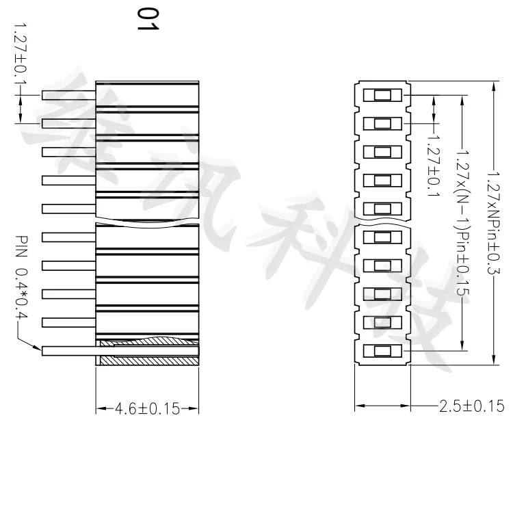 10 unids/lote 1,27 MM paso de una sola fila hembra conector de placa PCB selector Pinheader 1*2/3/5/6/7/8/12/20/40Pin