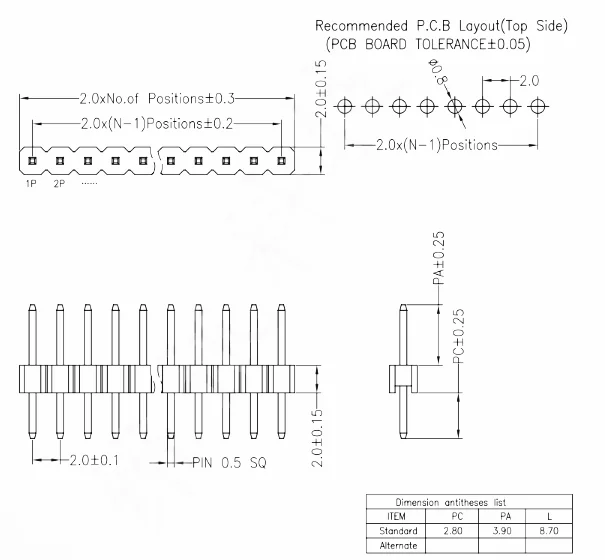Comprar 10 unids/lote 2,0mm pines de cabecera macho 1*2/3/4/5/6/7/8/9/10/12/15/20/40P 2mm conector de tira de pines de una sola fila cobre chapado en oro