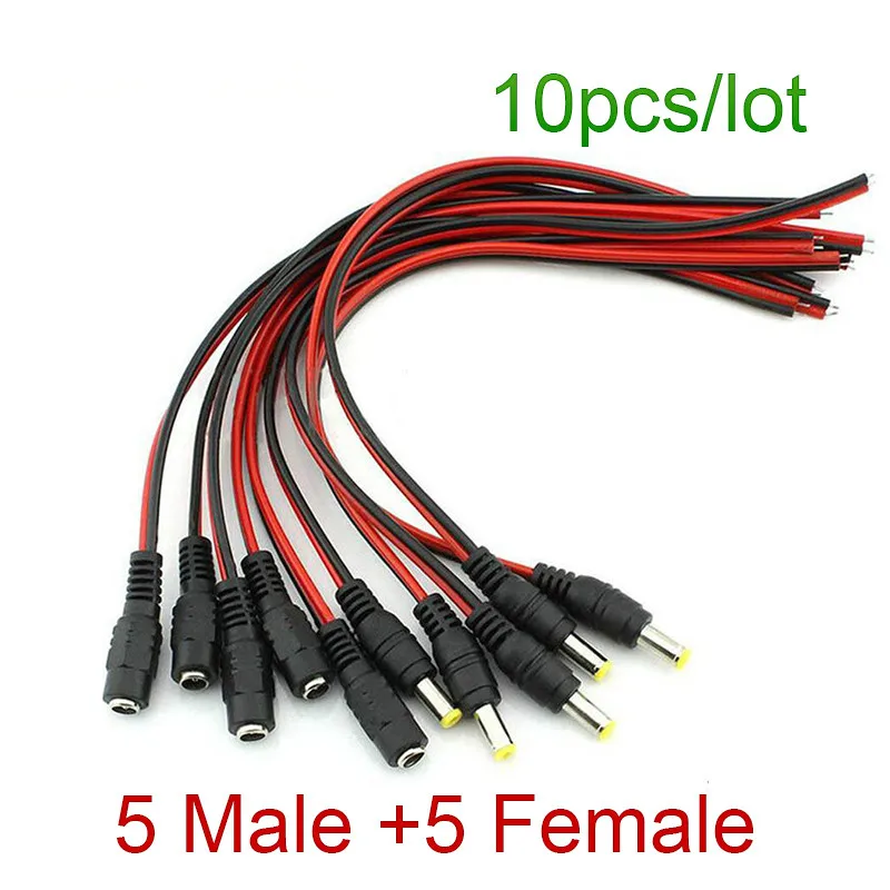 10 unids/lote 2,1x5,5 Mm macho + hembra enchufe 12V DC Cable de extensión de cola de alimentación para conector de cámara Cctv extensión de cola 12V/24V
