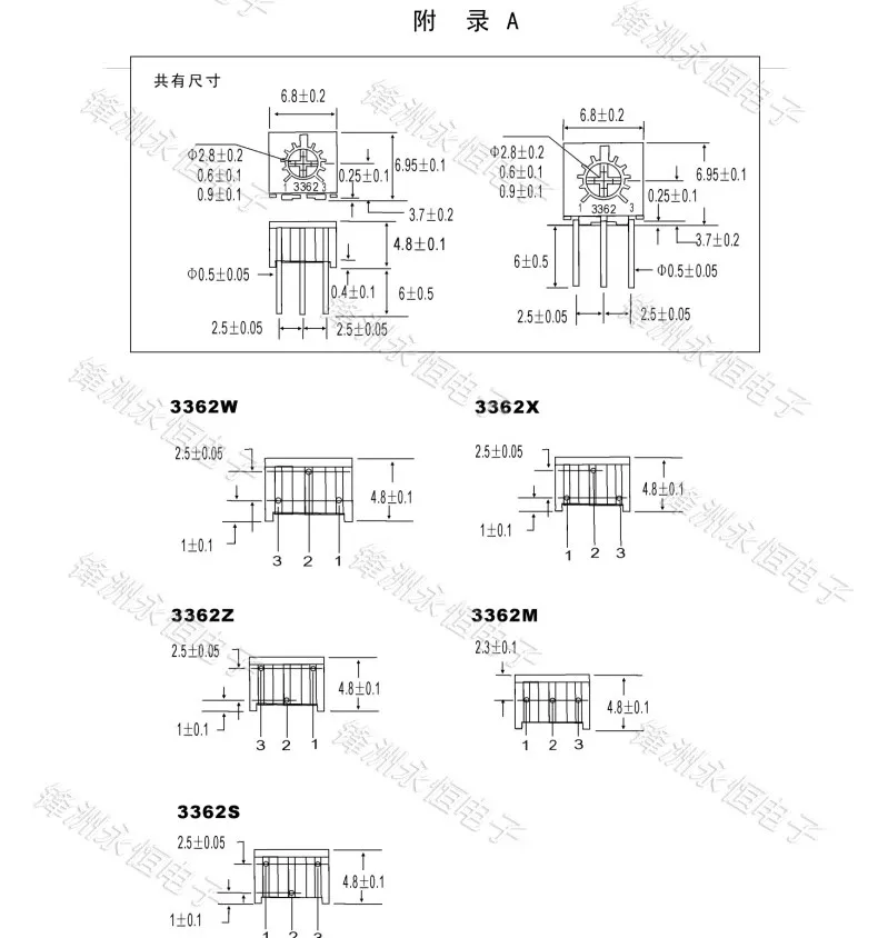 10 unids/lote 3362P Trimpo potenciómetro recortador 100 200 500 1K 2K 5K 10K 20K 50K 100K 200K 500K 1M P103 104 3362 serie resistencia