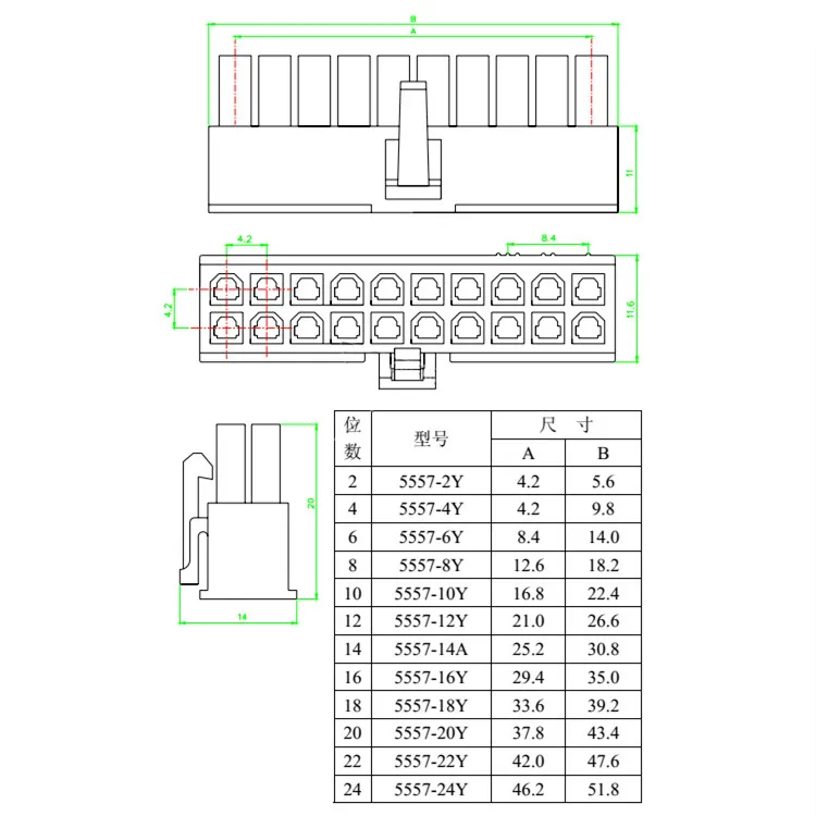 Comprar 10 unids/lote 5557-R 5557 4,2mm negro conector de arnés de cableado automotriz macho 2 - 24 pines para PC/tarjeta gráfica de ordenador PCI-E Power