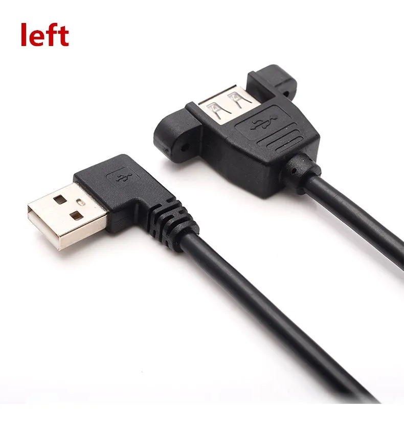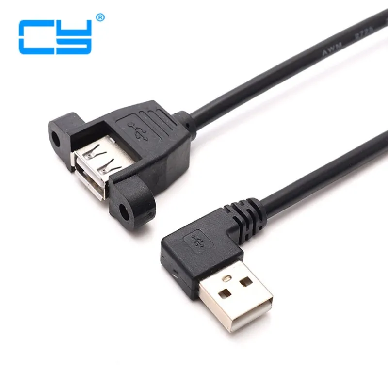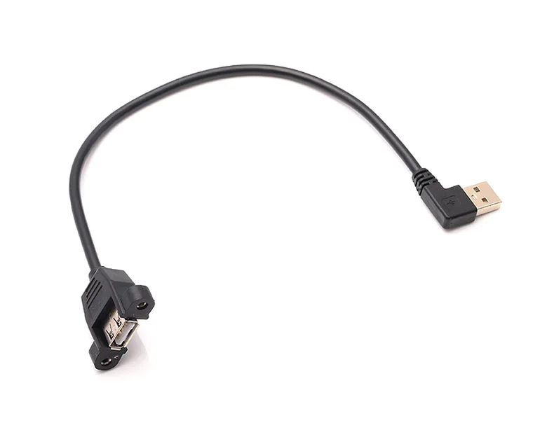 Comprar 10 unids/lote de Cable de extensión de montaje en Panel de bloqueo de tornillo M/F macho A hembra, USB 2,0 de ángulo recto de 90 grados, blindaje de 30cm + tornillos