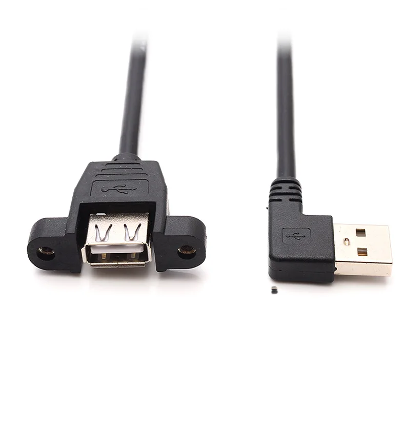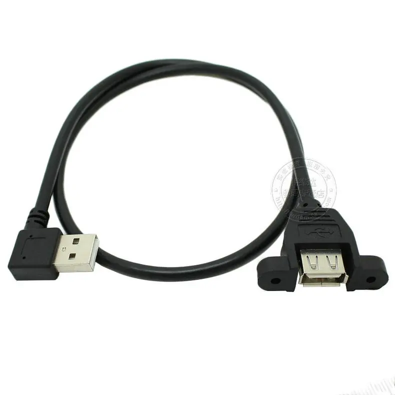 Comprar 10 unids/lote de Cable de extensión de montaje en Panel de bloqueo de tornillo M/F macho A hembra, USB 2,0 de ángulo recto de 90 grados, blindaje de 30cm + tornillos