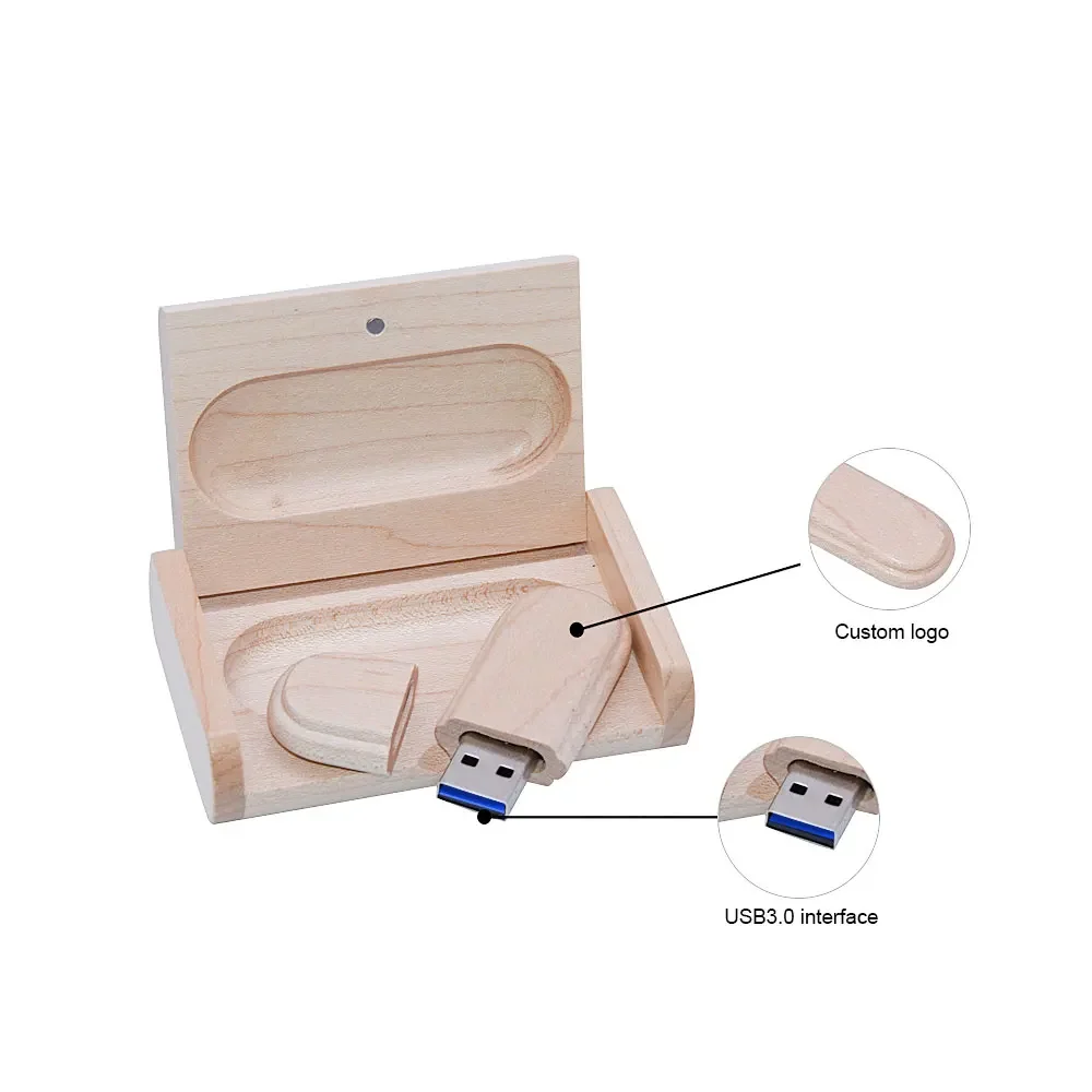 Comprar 10 unids/lote caja de madera Maple 3,0 unidad flash USB logotipo personalizado gratis lindo memoria stick unidad de pluma de madera 8GB 16GB 32GB 64GB 128GB regalo