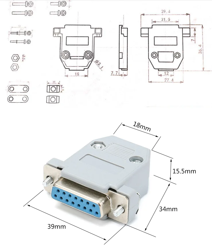 Comprar 10 unids/lote de carcasa de plástico DB15, carcasa de serie DB15 moldeada
