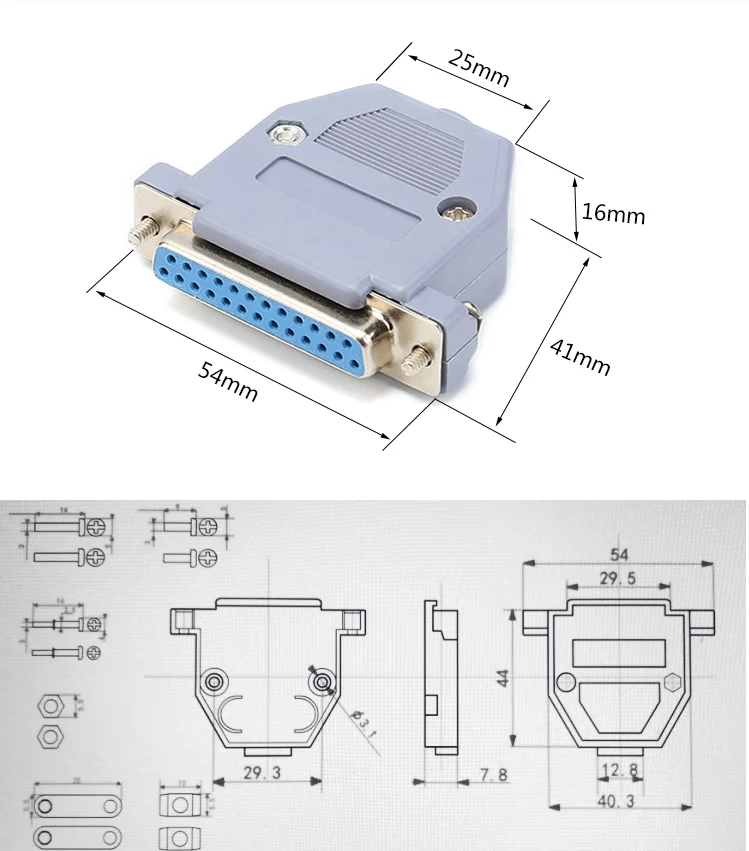 Comprar 10 unids/lote de carcasa de plástico DB25, carcasa de serie DB25 moldeada