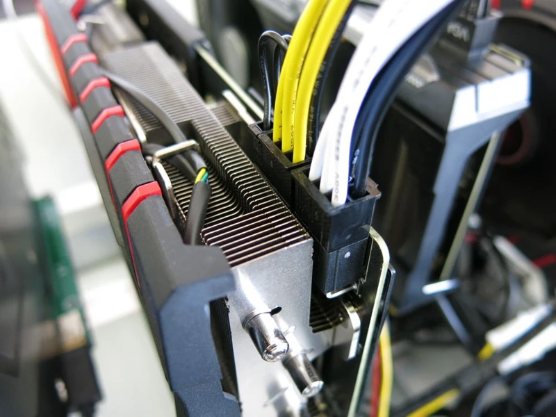 * 1 conector macho negro PCI-E de 6 pines y 1 conector negro de 8 pines (6 + 2 pines).