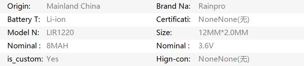 10 unids/lote LIR1220 1220 3,6 V batería de carga de litio pila de botón.