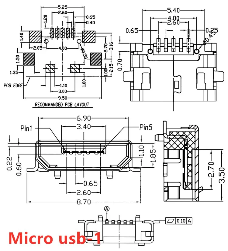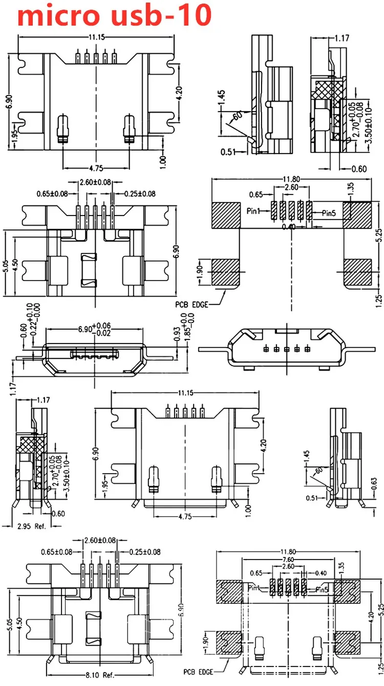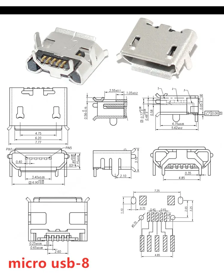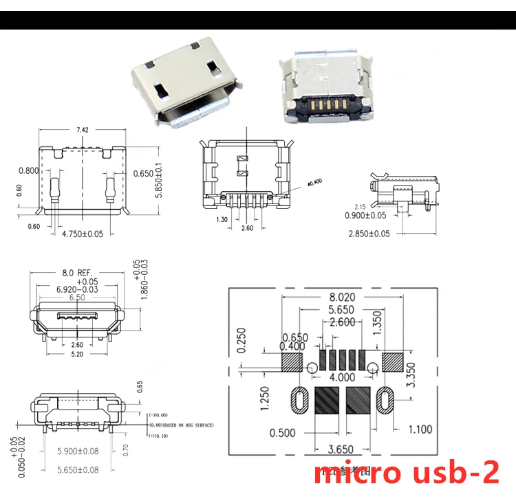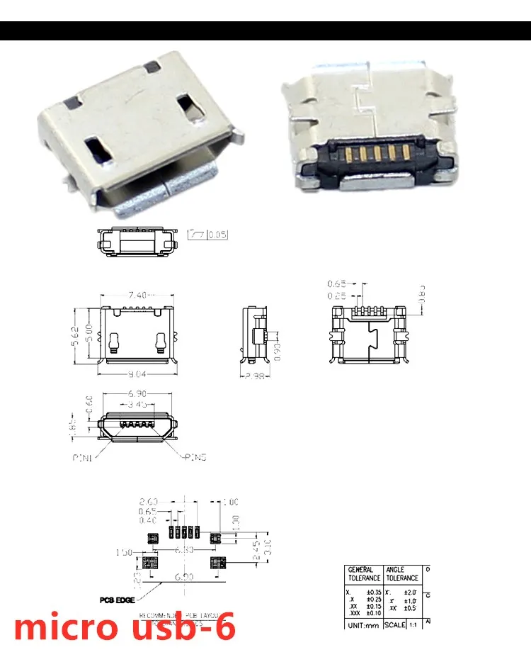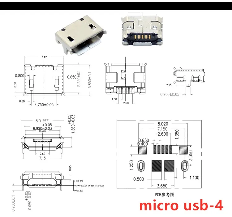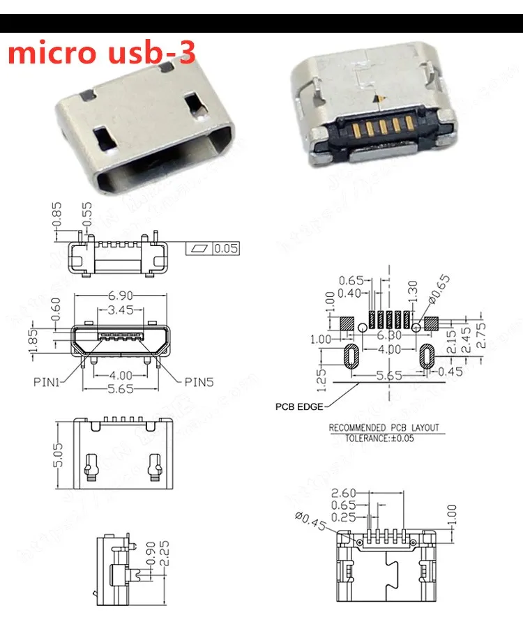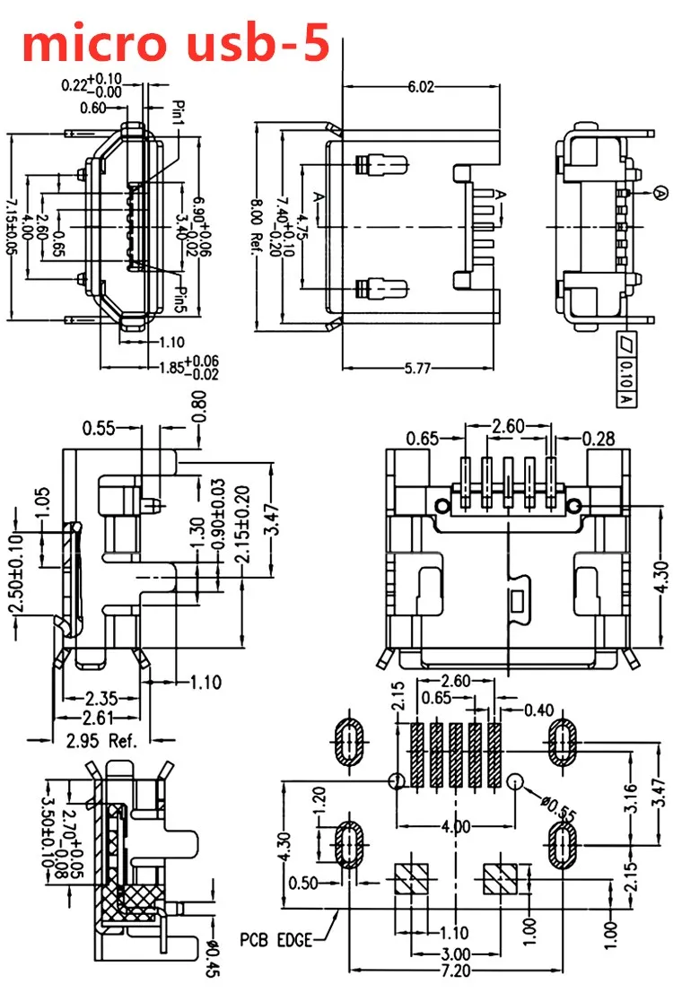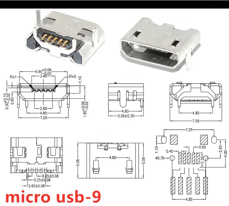 Comprar 10 unids/lote Micro USB 5 pines SMT conector tipo B colocación hembra SMD DIP conectores de carga USB
