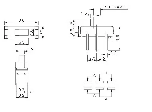 Comprar 10 unids/lote nuevo interruptor deslizante 2 posiciones 6 pines interruptor de palanca para PCB DPDT interruptor Vertical interruptores de palanca