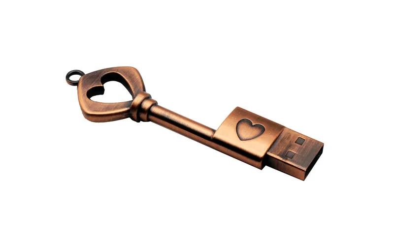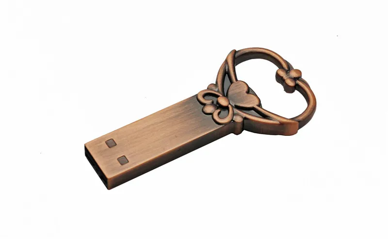 10 PCS LOT Pen Drive 128GB Forma de amor Memoria clave USB 64GB Estilo retro USB Unidad flash Regalo creativo 32GB Mini memoria Stick 16GB para computadora portátil USB 8GB Dispositivos de almacenamiento de metal 4GB