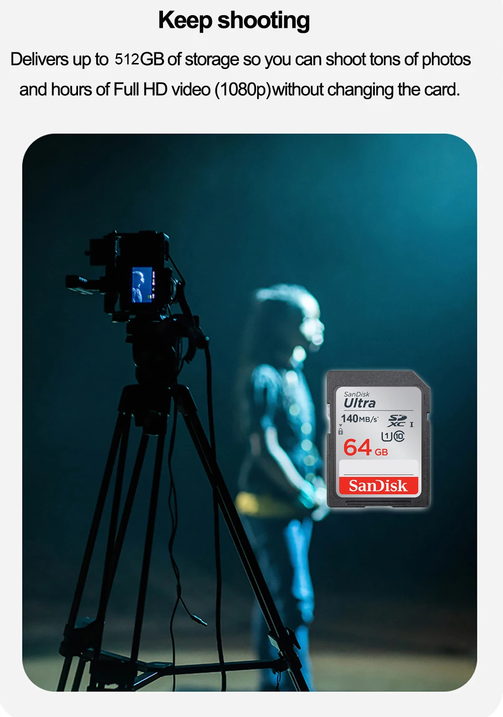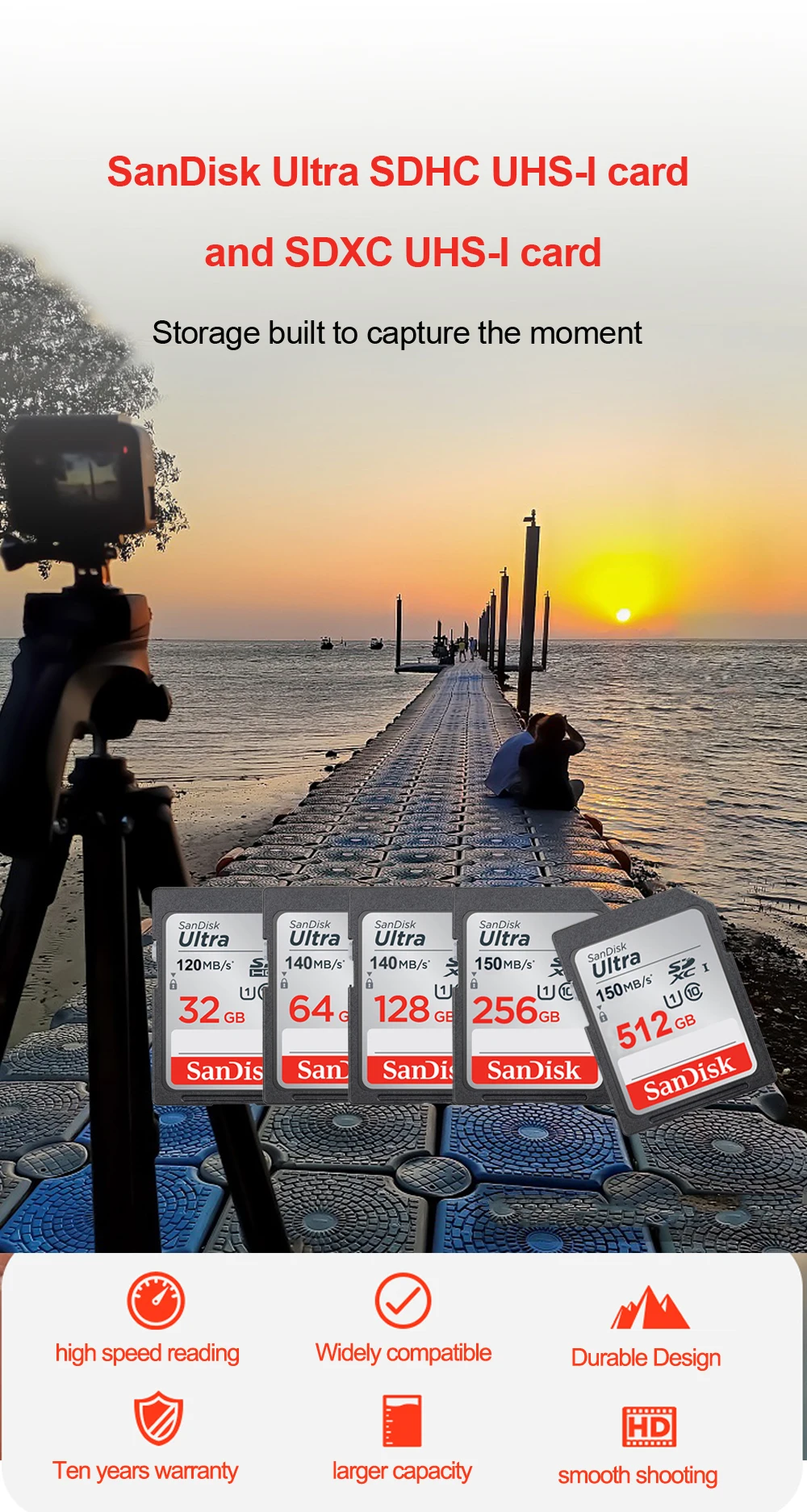 Comprar 10 unids/lote tarjeta SanDisk Ultra SDHC UHS-I 32GB y tarjeta SDXC UHS-I 64GB/128GB/256GB/512GB toma mejores imágenes y vídeos Full HD