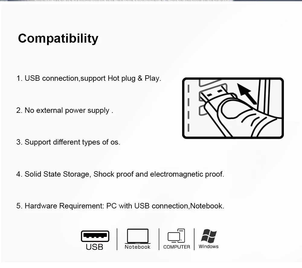 FEATURE:* Reading speed: 10MB-18MB/second * Writing speed: 5MB-8MB/second * Plug and play, no need to install any software * Extra storage space for your Android device * USB interface has higher speed and higher stability * Lightweight, high-quality metal protection connector * Solid state storage, shockproof, anti-electromagnetic * USB service voltage: 4.5V-5.5V * Storage life: more than 5 years * Using A-grade chip, it can be erased repeatedly 1,000,000 times * Operating system: Win98/ME/2000/XP/Vista/win7/win8, Mac OS 9.X/Linux2.4 or later * USB connection: supports hot swap. * Put the digital world in your pocket * Speed varies depending on the type of file being transferred and computer configuration.