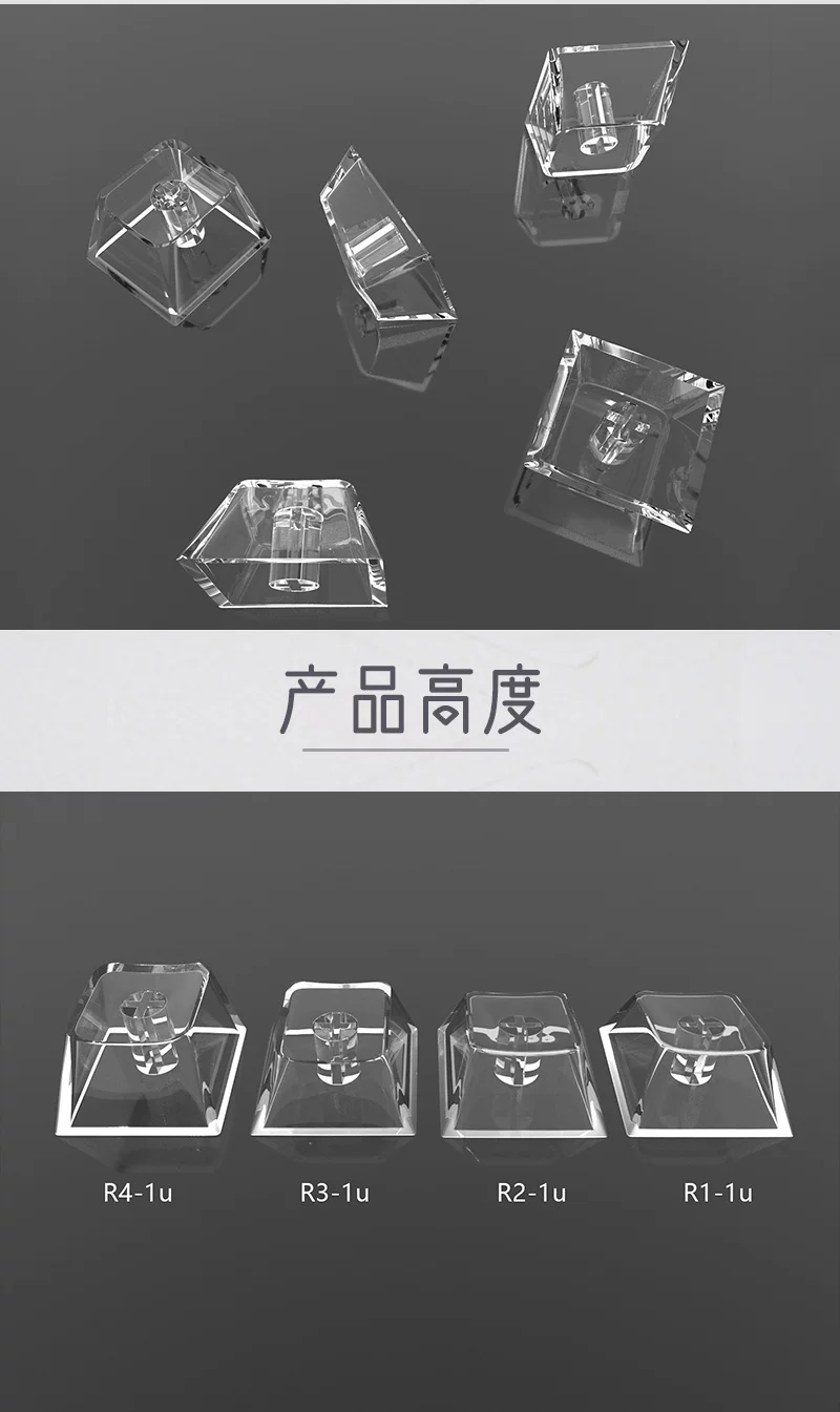 10 unids/pack Material de PC teclas transparentes de altura perfil de cereza 1U 1,0X tapas de teclas en blanco personalizadas DIY teclas no impresas