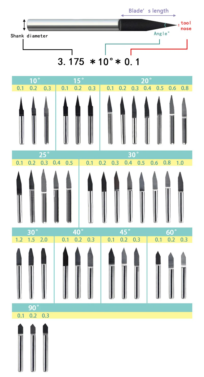 Comprar 10 unids/set 3.175mm fresa de grabado 1/8 broca en espiral brocas de rebajadora de CNC herramientas cuchillo PCB broca de grabado carburo de tungsteno
