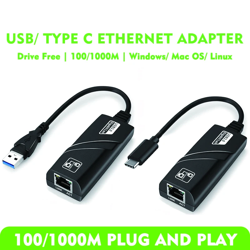 Comprar 100/1000Mbps Gigabit USB 3,0 tipo C USB a Rj45 LAN Ethernet adaptador convertidor tarjeta de red con cable para PC Macbook Windows portátil