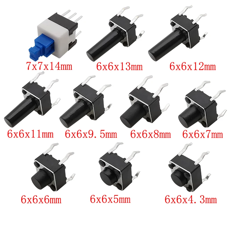 Comprar 100/180/200 Uds 6*6 interruptor de botón táctil 4,3mm-13mm DIP 4 pines Micro interruptor 6x6 teclas tacto encendido/apagado 10 modelos para Arduino