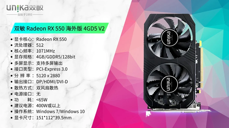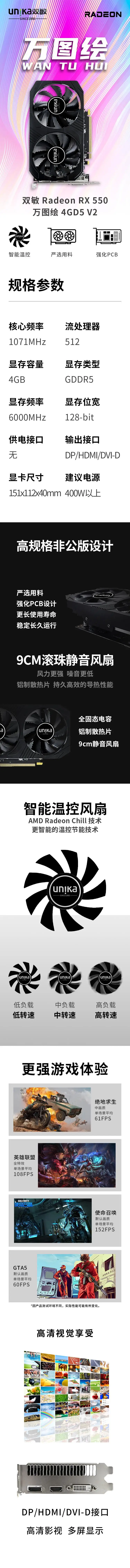 Comprar 100% NEW Brand UNIKA RX 550 4GB Graphic Card For Radeon RX 550 Series RX550 4G D5 V2 Video Cards Desktop 1071MHz 128bit 4G GDDR5