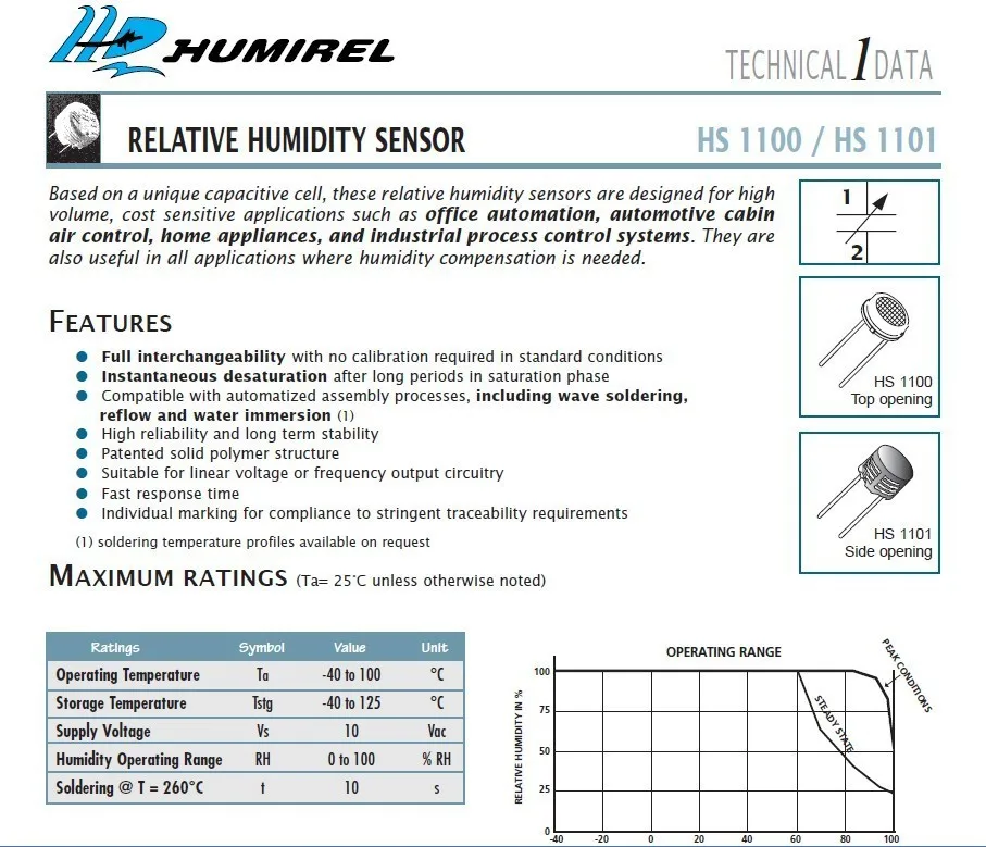100% nuevo Original 5 unids/lote HS1101 Sensor de humedad condensador sensible higrómetro para Arduino